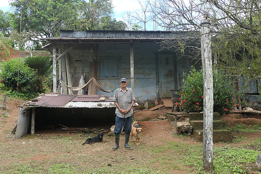 Der Vorbesitzer Agustin (am Foto vor seinem Haus auf der Fimca La Flor) ist überglücklich, er hat sich mit dem Geld seinen Alterssitz in der Nähe von La Gamba gekauft.